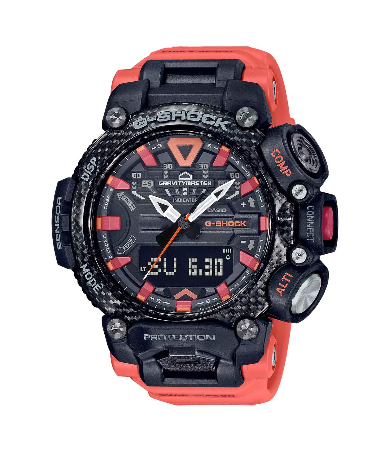 [vc_row][vc_column][vc_column_text]این مدل‌های G-SHOCK Master of G “GRAVITYMASTER” GR-B200 عملکردهای ضروری برای مأموریت‌های هوایی را همراه با ساختار سخت و مقاوم دارای محافظ هسته کربنی به‌طور هم‌زمان ارائه می‌کند. ساختار دارای محافظ هسته کربنی با قدرت بالا و مقاومت بالا دربرابر شرایط آب‌وهوایی، همراه با بدنه رزین تقویت‌شده با فیبرهای کربنی از این مدول محافظت می‌کند. این ترکیب، با ویژگی مقاومت دربرابر ضربه G-SHOCK که در سراسر جهان مشهور است، ساختاری ایجاد می‌کند که در برابر ارتعاش هم بسیار مقاوم است. قاب ساعت از سه لایه رزین با لایی‌های فیبر کربنی تشکیل شده است. لایه رویی نیمه‌شفاف است تا جنس کربنی زیر آن نمایان شود. سه دکمه سمت راست ساعت طوری چیده شده‌اند که شبیه دسته کنترل بالگرد به‌نظر برسند و درعین‌حال، نقش خود را در استفاده آسان از ساعت ایفا کنند. سیستم حسگر چهارگانه این مدل‌ها از حسگرهای فشرده‌ای استفاده می‌کند که گرد‌آوری قطب‌نما، فشارسنج/ارتفاع‌سنج، و قابلیت‌های دماسنجی را همراه با شتاب‌سنجی که تعداد قدم‌های شما را می‌شمارد در یک پیکربندی فشرده امکان‌پذیر کرده است. این ویژگی‌ها نظارت بر محیط طبیعی اطراف شما و تهیه گزارش‌هایی از فعالیت‌های شما را برای پشتیبانی جامع از مأموریت‌های هوایی آسان می‌کند. برنامه تلفن همراه ویژه G-SHOCK ضمن اینکه پیکربندی تنظیمات ساعت را آسان می‌کند دارای عملکرد Mission Function نیز هست. این برنامه به‌طور خودکار داده‌های ارتفاع اندازه‌گیری شده با ساعت و اطلاعات مسیر دریافت‌شده از GPS تلفن را ثبت می‌کند. نقاط ارتفاعی که به‌طور دستی گرفته‌اید می‌توانند در طول مسیرهایتان نشان داده شوند. ارتفاع‌سنجی و قدم‌شماری برای انجام محاسبات کالری مصرف‌شده استفاده می‌شود که افزایش‌ها و کاهش‌ها را درنظر می‌گیرد. نتایج در گزارش فعالیت ثبت می‌شود. با ویژگی «مکان‌نما» می‌توانید از عملکرد یکی از دکمه‌های ساعت برای ثبت مکان کنونی‌تان در برنامه تلفن همراه استفاده کنید. سپس عقربه ثانیه‌شمار موقعیت مکان ثبت‌شده را نشان می‌دهد، درحالی‌که نمایشگر دیجیتال فاصله تا آن مکان را نمایش می‌دهد. با «سفارشی‌سازی تعویض حالت» می‌توانید از برنامه تلفن همراه برای فعال یا غیرفعال کردن حالت‌ها به‌صورت جداگانه استفاده کنید طوری‌که فقط حالت‌های فعال نشان داده شود. حتی می‌توانید ترتیب نشان دادن حالت‌ها را نیز مشخص کنید. حسگر چهارگانه (دماسنج، فشارسنج/ارتفاع‌سنج، قطب‌نمای دیجیتال، قدم‌شمار) Super Illuminator دوتایی خودکار با نور LED برای روشن کردن صفحه ساعت و نمایشگر دیجیتال[/vc_column_text][/vc_column][/vc_row][vc_row][vc_column width="1/3"][/vc_column][vc_column width="1/3"][vc_column_text woodmart_inline="no" text_larger="no"][aparat id='6WtPS'][/vc_column_text][/vc_column][vc_column width="1/3"][/vc_column][/vc_row]