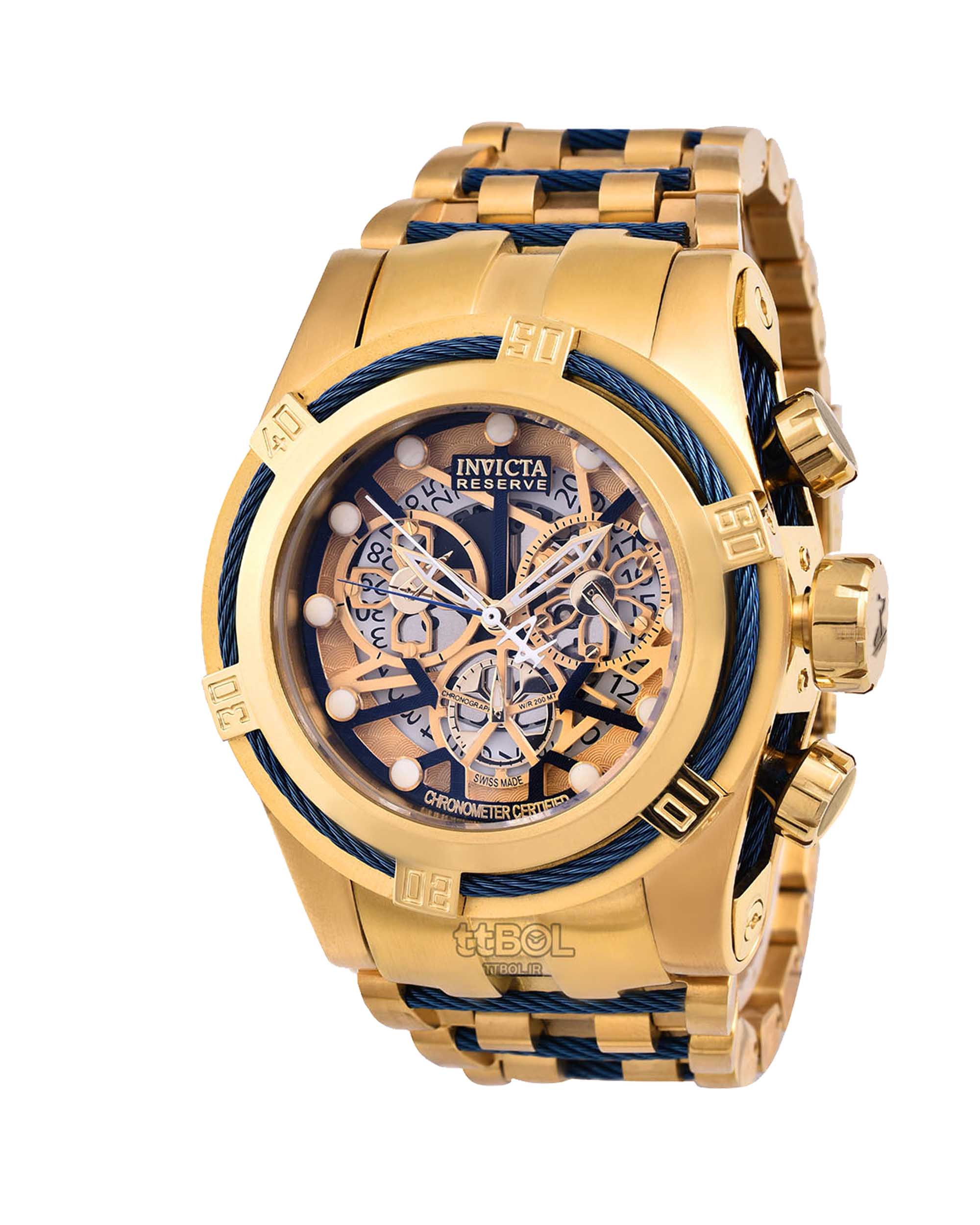 بهترین کیفیت موجود در بازار (های کپی درجه یک) موتور ساخت سوئیس با کیفیت عالی دارای سه موتور فعال و کرنومتر تمام استیل ضد زنگ و ضد حساسیت شیشه آنتی رفلکس مقاوم در برابر خش مقاوم در برابر آب (در حد پاشش آب) قطر ساعت : 50 میلیمتر ضخامت ساعت : 20 میلیمتر وزن ساعت : 375 گرم رنگ های به کار رفته : طلایی ، سرمه ای به همراه جعبه چوبی شیک با مارک اینویکتا دارای یکسال گارانتی شرکت تی تی بول