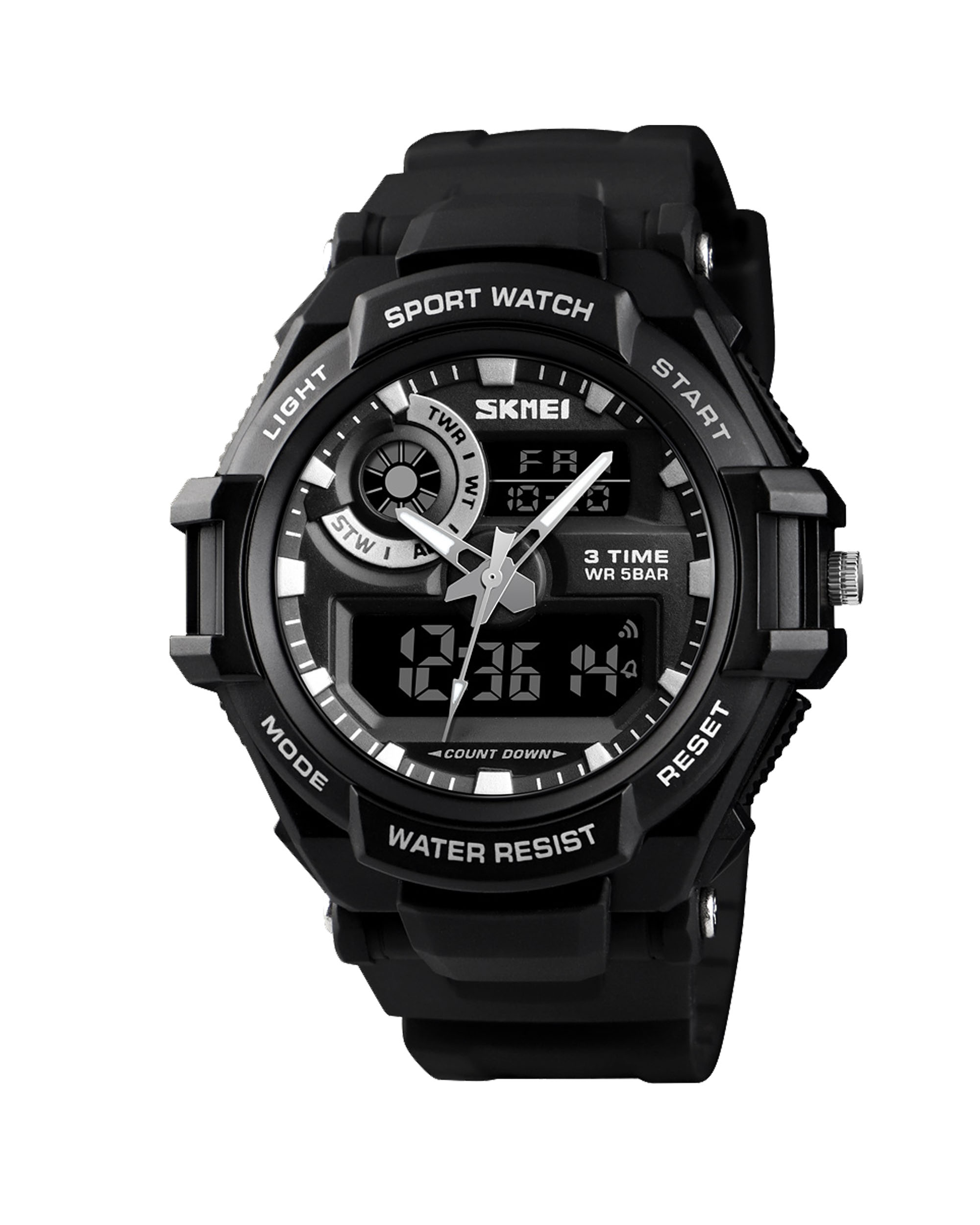 محصول اورجینال دارای ضمانت نامه اصالت دارای نشانگر تاریخ ، روزهای هفته دارای کرنومتر با ثبت صدم ثانیه دارای الارم و ساعت دوم دیجیتالی جنس بند و قاب : رزین جنس شیشه : رزین مقاوم در برابر آب (5ATM) قطر ساعت : 50 میلیمتر ضخامت ساعت : 18 میلیمتر وزن ساعت : 53 گرم رنگ های به کار رفته : مشکی به همراه جعبه شیک مارک اسکمی دارای یکسال گارانتی شرکت تی تی بول