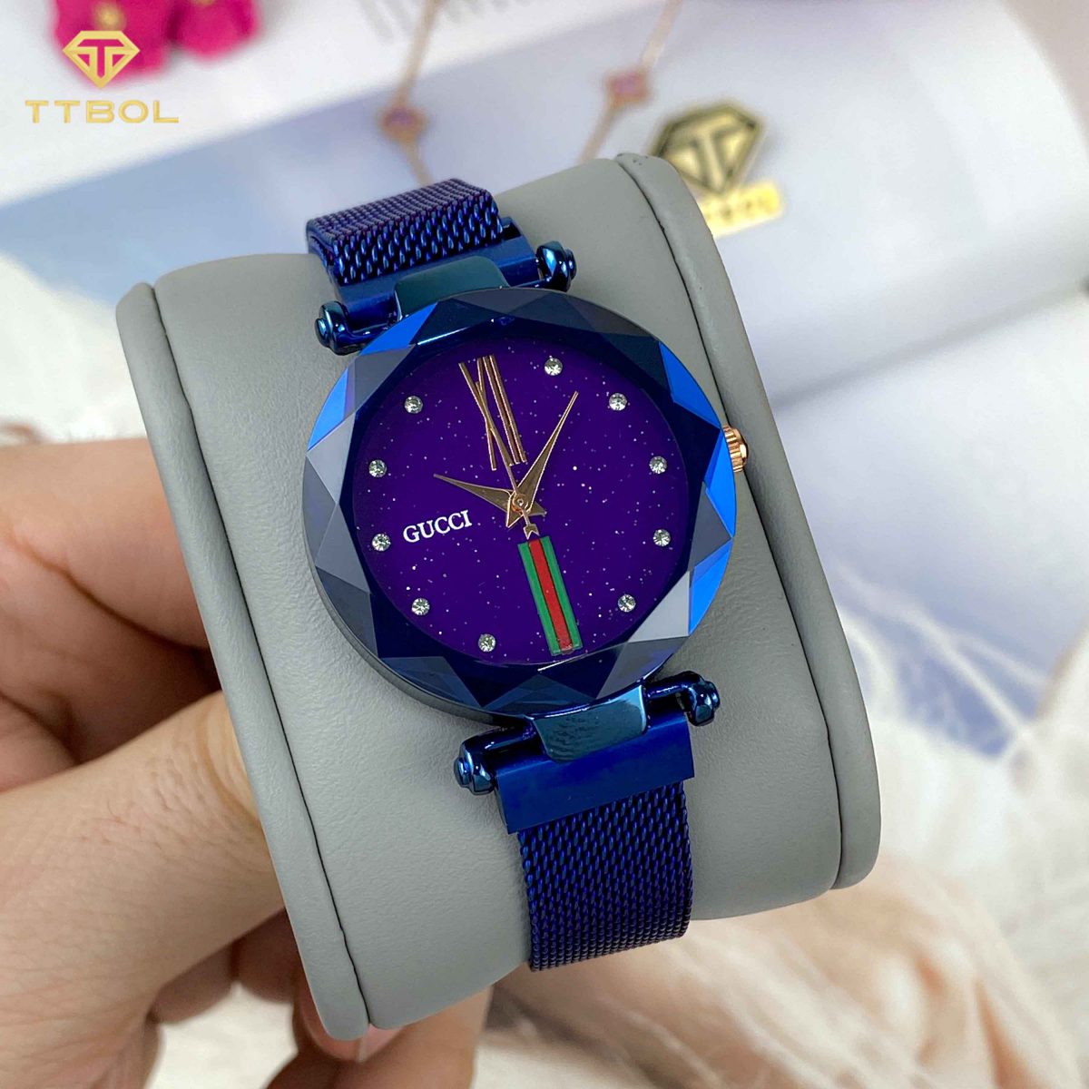 بهترین کیفیت موجود در بازار (های کپی درجه یک) موتور کوارتز ساخت ژاپن بند استیل رنگ ثابت و ضد حساسیت (قفل مگنتی) شیشه معدنی مقاوم در برابر خش مقاوم در برابر آب (در حد پاشش آب) قطر صفحه : 34 میلیمتر ضخامت ساعت : 10 میلیمتر دور مچ تا 200 میلیمتر وزن ساعت : 45 گرم رنگ های به کار رفته : سرمه ای ، بنفش دارای جعبه شیک با مارک گوچی دارای یکسال گارانتی تی تی بول